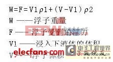 磁致伸缩式液位计出厂是根据用户提供的“上密度”和“下密度”确定浮子的重量。在测量界面时,实际上是浮子浮在界面上,所受的浮力和重力相等。公式为: